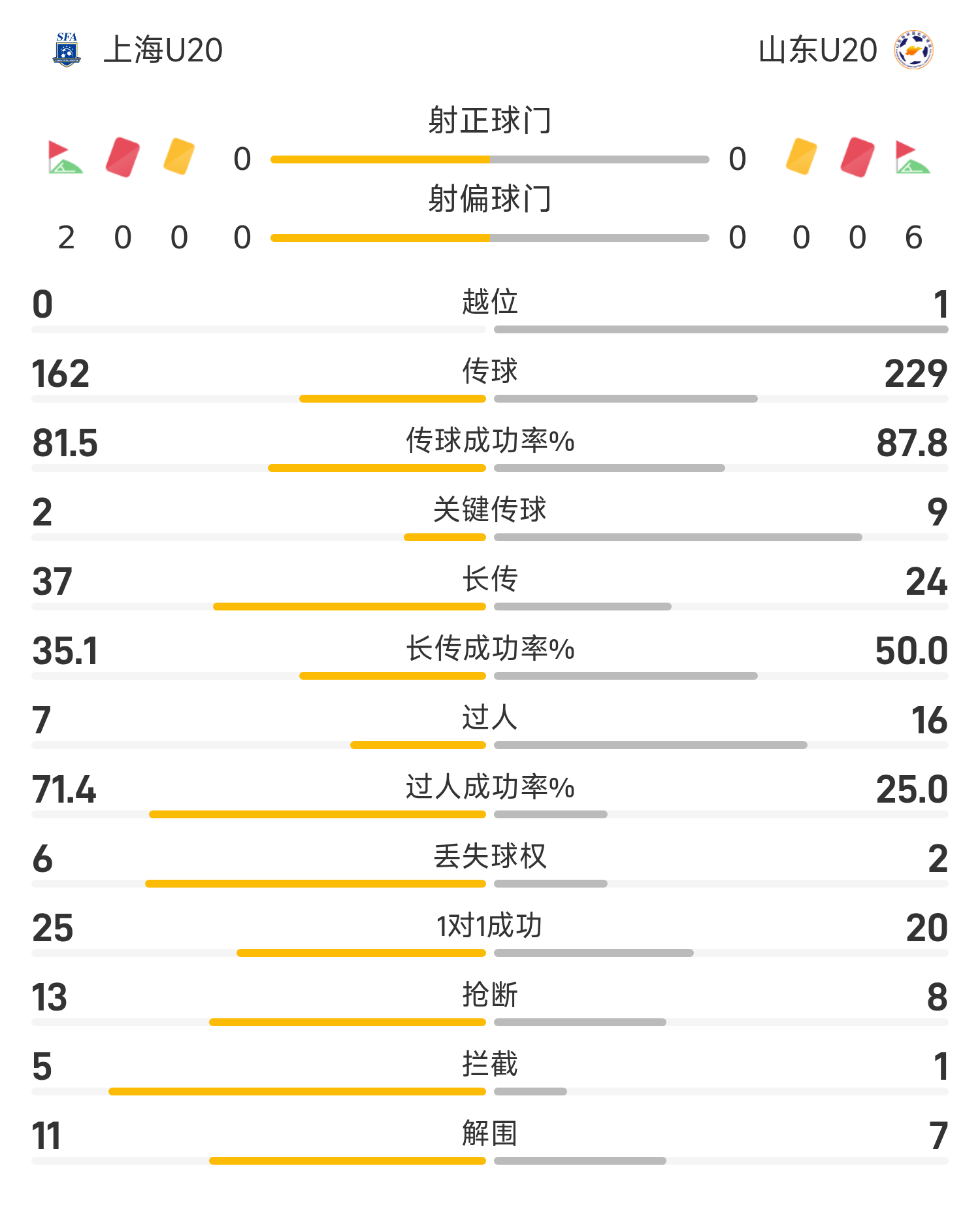 上海U20首發(fā)陣容:23-劉浩然、4-劉鐵誠、38-姜宏宇、13-許瑞軒、11-張俊杰、10-蒯紀(jì)聞、6-黎明(30’15-李陽)、8-黃銘、17、9-劉誠宇、20-王一凡